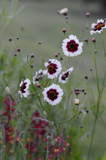 Blomsterfrø med sorter som valmue, verbena og bakkeryllik