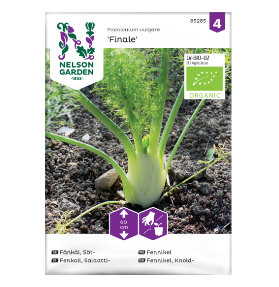 Økologiske frø. 'Finale' er en sprø og smakfull grønnsak med en delikat lakrissmak. De oppsvulmede bladslirene og skuddene kan nytes både rå og tilberedt, og er et perfekt tillegg til mange retter. Prøv den ovnsbakt sammen med rotgrønnsaker for en smakfull kombinasjon.