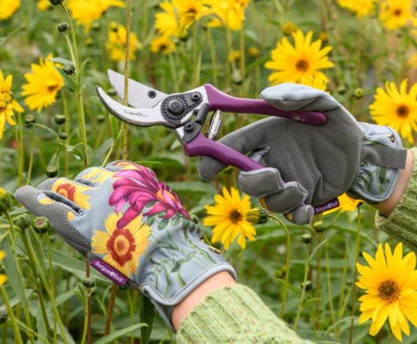Hagehanskene har en polstret håndflate for komfort og beskyttelse, og en elastisk mansjett som forhindrer at rusk kommer inn i hanskene. Hanskene er myke å ha på, men samtidig svært slitesterke og holdbare. For å holde dem i god stand er de også maskinvaskbare på 30°C. Med litt stretch i det vakkert trykte stoffet passer én størrelse (nesten) alle.